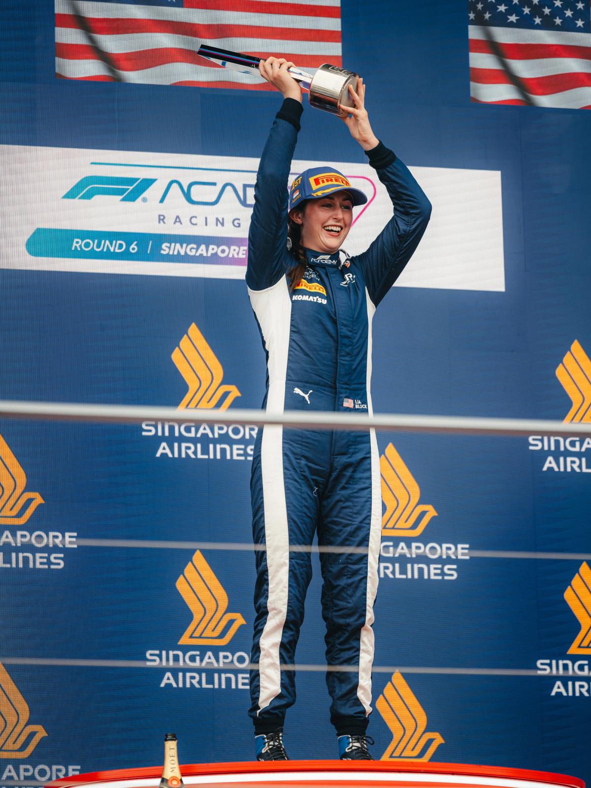 Singapur no solo fue escenario de Fórmula 1 este fin de semana. También fue el lugar donde Lia Block, joven piloto estadounidense de la Williams Racing Driver Academy, se consagró como ganadora por primera vez en monoplazas. Tras lograr un segundo lugar en Zandvoort el fin de semana anterior, ahora fue un paso más allá: victoria absoluta en la F1 Academy.